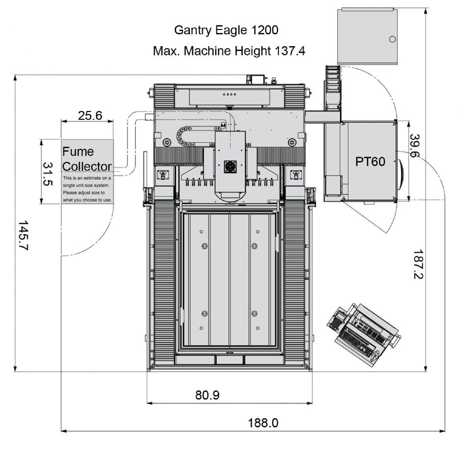 - The Gantry Eagle 1200 features a dual 32-bit, PC-based CNC control that enables faster data processing and servo control. The machine’s unique construction provides thermal stability and rigidity and features a 4-sided drop tank design that allows work-area access from all sides.